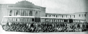 200多名公交公司职工和家属,排成长长的队伍,神情喜悦地在公交车前合影。这辆25米的最长公交车运行在东站—西站之间,人流拥挤时,整车可拉200人以上。令人惊叹的是,该车整整使用了10余年,直到上世纪70年代初,才因过于老旧而报废。