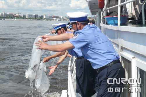 16万尾国际濒危物种鲟鳇鱼放流黑龙江