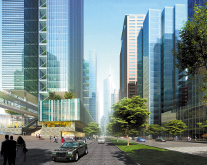 将约60万平方米的高中档写字楼、13万平方米商业裙楼及约17万平方米高级酒店及酒店式公寓有机融合在一起。