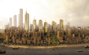寓意正在建设中的是重庆解放碑金融街,是重庆市金融业的集聚地。