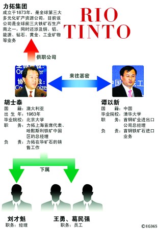 力拓有“求”于国内钢铁企业,尤其是对于了解中国钢铁行业形势、有途径知道中国钢铁企业一年一度的谈判底线的人格外重视,通过拉拢收买一些钢铁企业代表获取机密。