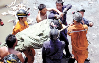 救援赵卫星 黄永辉是最后一个走进去,背出3人中的最后一人赵卫星的。正因为此,他看到3人被困环境的全貌。“那个空间大概不到1.7米宽,1.5米高,人只能低着头站着。”黄永辉进去的时候,看到赵卫星躺在一条宽1.2米的皮带上,身上穿着灰色的工作服,头上没戴帽子,赤着脚,脖子上还围着一条白毛巾。地上的3盏矿灯都亮着,发出幽幽的光,将昏暗的洞内照的若隐若现。洞内三面围墙都是水泥的,无任何出口。