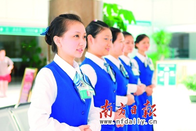 与其他医院不同,东莞港湾医院的候诊室显得井然有序,迈进港湾医院宽敞明亮的大厅,迎面而来的是亲切、真诚的导医小姐。她们严格做到“三上(微笑在脸上、文明语言在嘴上、勤快动作在手上)”,“四声(来有迎声、问有答声、走有送声、配合有谢声)”。工作人员大方的仪态,真诚的微笑,关心的询问,引导患者挂号、取药、治疗、交费等,帮助患者解决就医过程中遇到的任何不便。使无数习惯了“三长一短(挂号排队长、诊疗等候长、付费时间长、看病时间短)”的患者倍感欣慰。