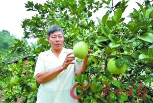 山里一场大雨过后,从三河镇政府所在地汇城到陈金村的10公里上山水泥道路成了清凉凉的世界。沿途村舍周边空地和道路两旁几乎都种满了柚子树,而地处半山腰上只有100多户人家的陈金村更是看不到一点空地,房前屋后四周山坡全是柚子树,足球大小压弯了枝头的蜜柚再有两个多月便可采摘上市,潮湿的空气中弥漫着淡淡的柚香。