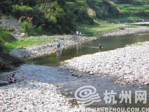 昨天下午,在水库上游溪流中,记者看到有一家子是从金华市区开车来此游泳,他们用网捕捞了十多条手指长的小鱼。