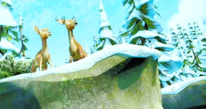 ●奇角鹿 在《冰川时代3》中,剑齿虎迭戈追一只看上去像鹿的动物,这只动物叫奇角鹿(Synthetoceras)。奇角鹿是已灭绝的北美哺乳动物,它最大的特点是鼻端上长着一只开叉的角。