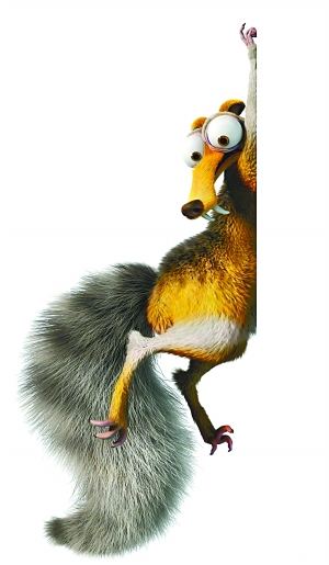 最后一个问题,也是被问得最多的———那两只“松鼠”到底是什么动物呢。答案是,它们叫“scrat”,这个词是为了它们专门造出来的,意思是“剑齿松鼠”。也就是说,这种动物从来就没有存在过。“剑齿松鼠”是利用流行文化对剑齿虎的热爱,用剑齿这个特征“装饰”了松鼠,形成了这个经典的形象。对剑齿松鼠成了片中“不是主角的主角”,风头完全盖过了所有的主角,这种小配角冒出头的例子不少,但可以和“剑齿松鼠”相提并论的只有漫画系列“花生米”中的小狗“史奴比”。为了对得起观众对这个角色的喜爱,《冰川时代3》特意安排了一个新角色叫“scratte”,像“scrat”的阴性形式。“她”是一只长着剑齿的鼯鼠。