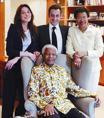 萨科齐夫妇和曼德拉夫妇在一起资料照片