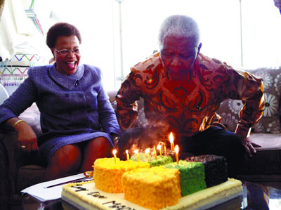 曼德拉在妻子格里卡的陪伴下,度过了自己91岁生日