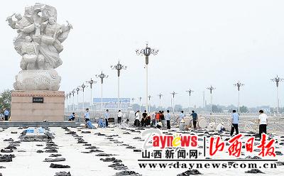 上千石鼓镶装临汾在建大桥(图) 山西新闻网 山西新闻网官方账号 2009.07.1906:12 关注 山西新闻网 山西日报 7月18日,临汾市锣鼓文化大桥正在进行最后的收尾工作。该桥桥墩护栏和桥面隔离带全部由多达1600多面造型各异的石鼓雕刻镶装,预计将在7月下旬竣工通车。 闫锐鹏摄