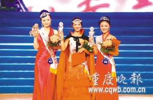 本报讯 谁是代言重庆的重庆小姐?谁最具有人气?昨晚,“诗仙太白·新花瓷杯”2009重庆小姐竞选总决选在人民大礼堂隆重举行,引来上万市民到现场观看。两个多小时里,重庆小姐们为观众献上一场视觉盛宴,最终,23号选手吴莎摘得金冠奖,47号选手吴媛媛和26号选手刘艳蕾分别获得银冠奖、铜冠奖。她们分别是四川音乐学院在校学生、太极集团和重庆同阳商务策划公司员工。