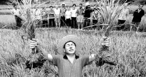 2009年7月20日,重庆市巴南区安澜镇柑子村,一村民面对自家被虫害得颗粒无收的稻谷仰天长叹。