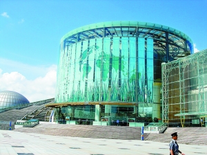 市少年宫主体造型俗称大坡面,而在大坡面中伸出“头”来的是个圆柱形的“水晶石大厅”。这个所谓的“水晶石大厅”的立面和屋顶全由玻璃做成,整个夏季处于西晒中,里边温度完全像个“大蒸笼”。