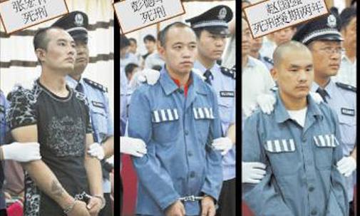昨日上午,曾被公安部列为全国“一号大案”挂牌督办的府谷“5·29”特大持枪抢劫杀人案,在府谷县政府多功能厅公开首次开庭审理,随着审判长手中的法槌敲响,3名被告人中张宏怀、彭德华被判死刑,赵国强被判死刑,缓期两年执行。