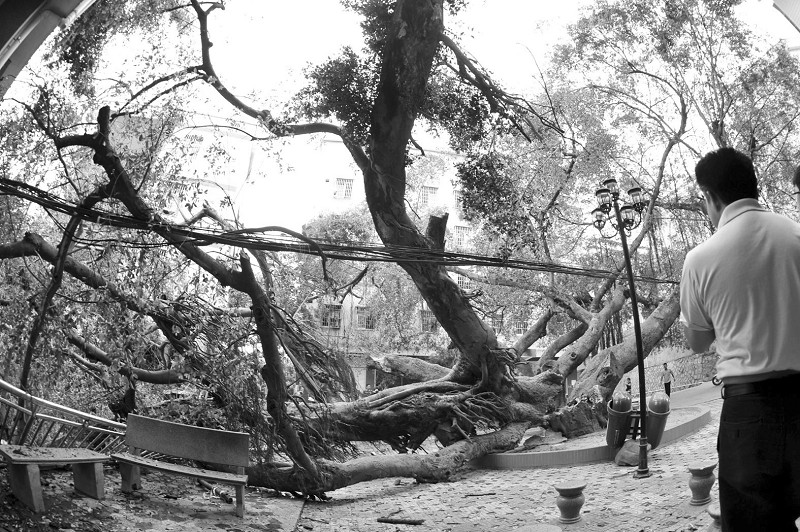 灌口三榕公园 182岁“高龄”的大榕树被白蚁啃断