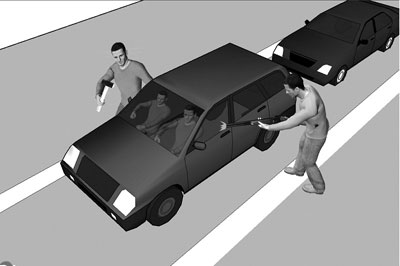 2008年5月29日,4歹徒在府谷县一银行门口发现两人抬着一包东西出来,放在了一辆越野车上,他们怀疑是现金。