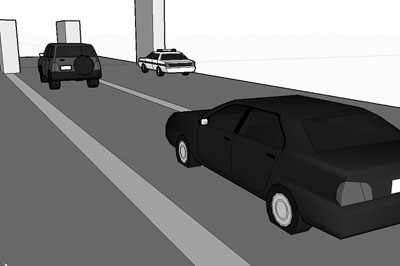 歹徒跟着越野车到转龙湾收费站时,打算下手,但发现前方不远处有一辆警车,推迟行动。