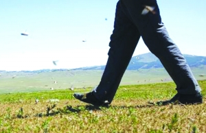 玉米地旁边,就是察右前旗的上万亩草场。在草场上,每踏一步,都会惊起几十只大大小小、颜色各异的蝗虫。