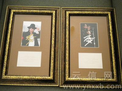 两张迈克尔·杰克逊的亲笔签名照。