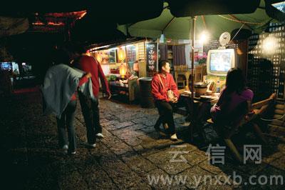 雨从白天下到了晚上,深秋的阵阵寒意并没有驱走丽江的热度,红色暧昧的灯光包裹着古城,好像那烧得正旺的火塘。在这个全国性的旅游淡季里,来自世界各地的人还是将丽江古城狭窄的街道挤得水泄不通,他们围绕着这座古城载歌载舞。有人希望听到动听的歌谣;有人希望买到漂亮的衣裳;有人左顾右盼等待艳遇;有人花了大把的钞票只为买一醉……
