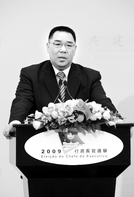 第三任行政长官的任期自2009年12月20日至2014年12月19日。崔世安现年52岁,于今年5月12日宣布辞去澳门特区政府社会文化司司长职务,开始参加第三任行政长官的选举。