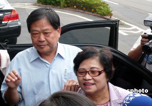 7月23日下午举行的民进党中评会例会决议,对7月11、12日赴长沙出席两岸经贸文化论坛的两名党员许荣淑、范振宗予以停权三年的处分。图为许荣淑、范振宗出席中评会就参与两岸经贸文化论坛一事做说明后离开党部。