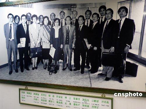 民进党中央党部9楼主席办公室外陈列的历史照片显示,许荣淑(前排左五)和陈菊(前排左四)、谢长廷(前排右三)、苏贞昌(后排左四)、邱义仁(后排左一)等都是创党元老。