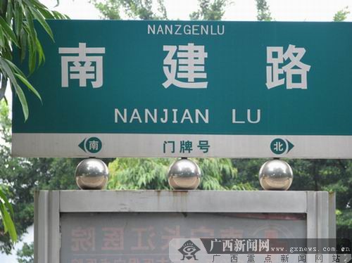 路牌“南建路”第一行为壮语拼音,第三行为汉语拼音。广西新闻网实习生 李英超摄