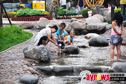 山西新闻网7月29日讯(记者 宇巍)今日,记者途经玉门河公园时看到,公园内景色怡人,游人众多,园内的假山小溪处成为孩子们嬉戏游玩的绝佳场所。可是就在这样美好的环境中却出现了这样一幕,一个三、四岁的小孩儿在这人工小溪中撒尿,身后的妈妈还在一旁给他提裤子,一同戏水得小女孩更是看的目瞪口呆。