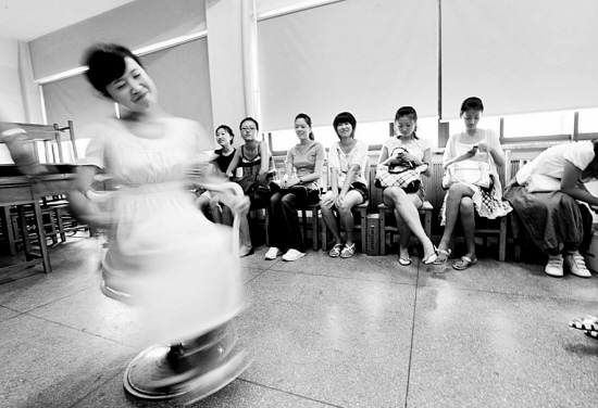 空姐招募昨日进入严格体检阶段,而让选手坐转椅成为其中较为特殊的一环