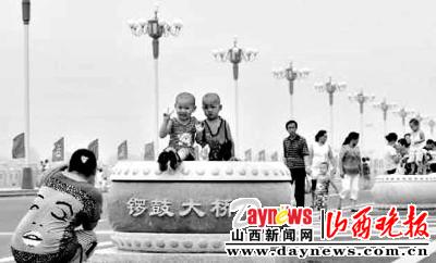 | 7月29日,山西临汾市锣鼓大桥竣工通车,市民赶来参观留影。 |