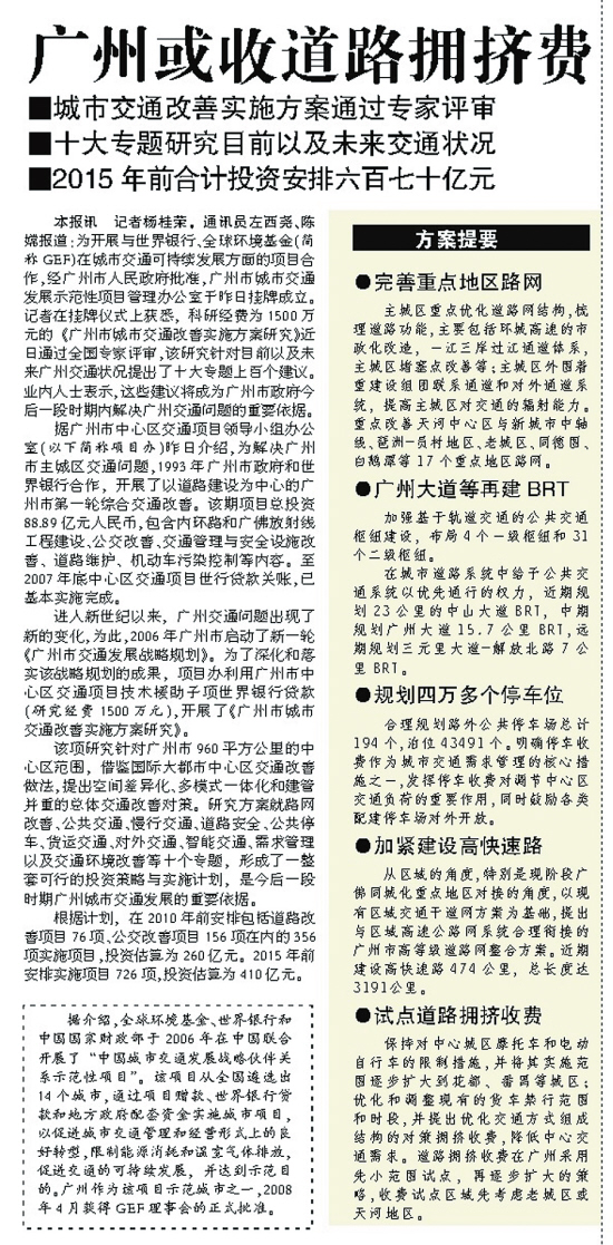 传统中国绿林中流行一句话,说“若打此路过,留下买路财”。这句话听上去很草莽,但是眼看着就可能在不久后变成一种现实———广州市建委组织专家进行交通状况改善方案评审,其中有一份报告建议,开车经过交通比较拥堵的路段,可能要交交通拥挤费。