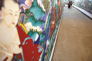 记者 章荣来 近日,云南省民族博物馆展出了一幅长达660米、宽3米的唐卡。据创作者介绍,这幅目前世界上最长的唐卡,绘制时间长达3年,耗资近千万,仅绘画用掉的黄金就达到7公斤。更惊人的是,这么长的一幅唐卡,实际上还只是“半成品”,预计成品长度近千米。