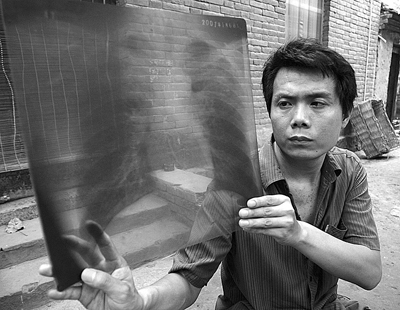 7月30日,张海超面对自己2007年的胸腔X光片,一脸漠然CFP供图