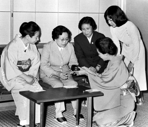 1978年10月,卓琳随邓小平访问日本,这是卓琳在迎宾馆日本式别馆参观茶道(1978年10月23日摄)。新华社发