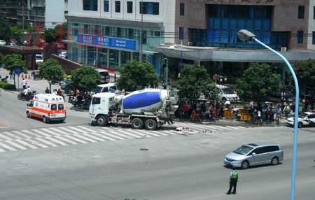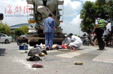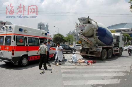 无独有偶,2008年12月24日11时许,一位35岁的女士骑着电摩,经过福州广达路建材市场即将到家时,也是被一辆右拐弯的搅拌车撞上。