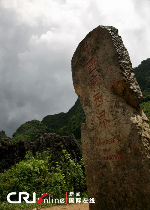 CRI中外记者边境行——中越边境53号界碑(高清组图) 国际在线 国际在线官方账号 2009.08.0103:10 关注 中越边境53号老界碑是中国和越南边境的一座石碑,于清朝1896年所立。(国际在线记者李喆 摄) 中越边境界碑。(国际在线记者李喆 摄)