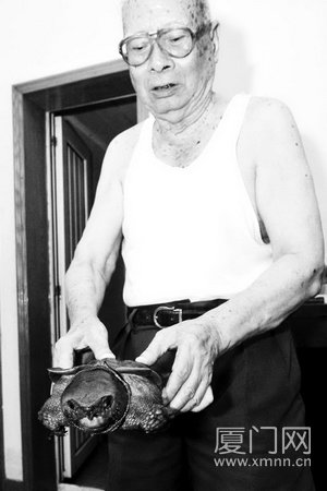 老两口说,他们有个儿子,也在厦门,但老两口单独住,儿子没空养这只大头龟。
