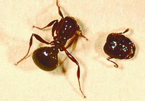 波特说,这些小蝇子攻击红火蚁的方式相当奇怪。“它们就像‘异形’一样。《异形》之类的电影,灵感就是从它们来的。”这些小蝇子会在红火蚁身体里产下卵,卵留在其中孵化成幼虫———也可以说是小蛆。随后,这些幼虫扭动着身体,爬到蚂蚁的脑袋里,在那里靠吃红火蚁的血淋巴、肌肉组织和神经组织为生。注意,在此期间作为“房东”的红火蚁还活着。