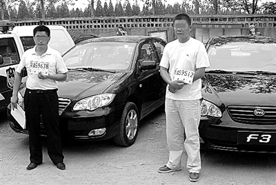 昨日上午10许,东西湖交通大队民警在107国道幸福路段发现,两辆比亚迪F3新车行踪可疑,便将两车拦下。经查,车上的临时行驶车号牌均为伪造的。民警当场对其进行查扣,并将两人移交公安机关处理。图为其中一名当事人。通讯员 丁辉 肖之峰