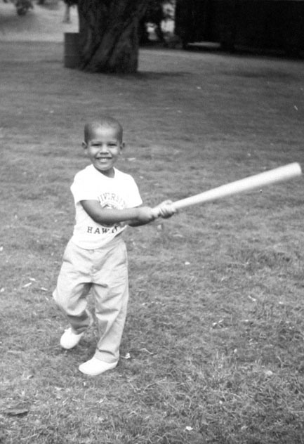 儿时的奥巴马在打棒球