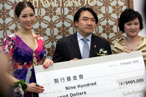 八月四日,嫁入豪门的艺人徐子淇[左]出席一家韩国品牌护肤店开幕典礼,以“智行基金会”慈善大使身份联同其他嘉宾,捐出总值九十万港元作慈善用途。中新社发洪少葵 摄版权声明:凡注有“cnsphoto”字样的图片版权均属中国新闻网,未经书面授权,不得转载使用。【更多图片】