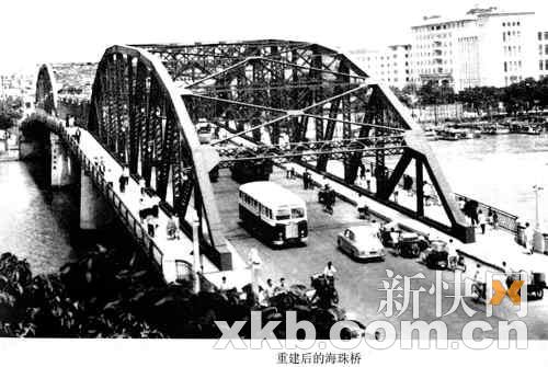 到11月5日,全新的北孔钢梁和南孔钢梁也先后架起来了。就这样,经过100多天的艰苦奋斗,海珠桥重现在广州人的眼前,几乎和以前一模一样。