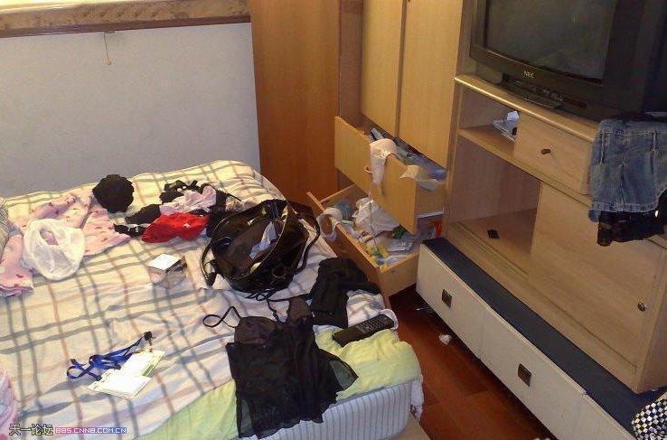 合租女走了,敞开的房间留一床东西