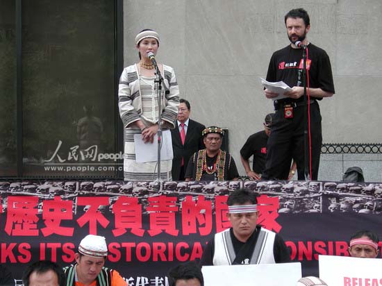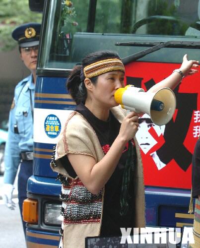 资料图:2005年6月,高金素梅在日本东京声讨当年日军的暴行。