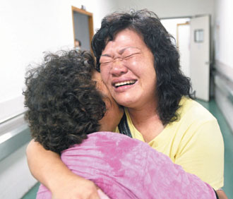 台海网8月11日讯 生死相隔只在一瞬间!获救的甲仙乡小林村民潘春美,昨天在医院紧拥着从台南赶来探望的堂妹潘秀敏,劫后余生,乍见恍如隔世,两人泪如雨下。