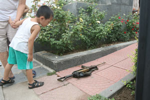 方北路民心河清淤捞出气枪 市民围观(图)