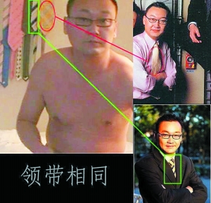 记者从网友上传的照片中看到,拍摄地点像是一家酒店的客房。有网友推断这家酒店是位于央视大楼旁边的梅地亚酒店,理由是“马斌读报”是早上播出的节目,他一般清晨四五点就要上班,央视就在旁边的梅地亚中心给他包了一个房间,方便他早起上班。甚至有网友上传了梅地亚酒店标准双人间照片,与裸照中男子所躺的床的颜色和台灯的位置作对比,结果发现两者基本一样。同时,好事的网友还把裸照中墙壁上挂着的多条领带,与马斌两张生活照中系着的领带作对比,结果发现两者的领带一模一样。