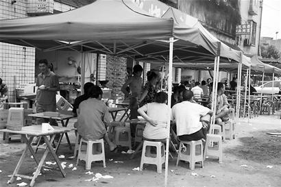 一排“苍蝇馆子” 潲水尽往花坛里倒