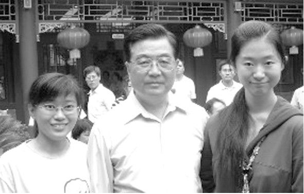 之后,胡总书记同王文悦以及学校的另一名同学一起合影留念,胡总书记鼓励她们,要努力学习,将来做一个对社会有用的人。王文悦激动的心情一直持续到中午,她给父母发短信告诉这一好消息。